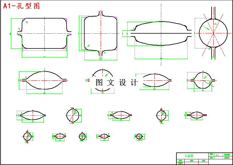 本设计以唐钢棒材厂为参考,设计年产70万吨棒材车间工艺,典型产品为φ16mm螺纹钢。按照车间设计的步骤,介绍了棒材的产品范围、产品应用领域,产品特性及本厂的建厂经济依据,确定了产品生产大纲,在此基础上计算了典型产品总延伸计算、轧制道次,确定了轧机设备、轧机布置形式,进行了压下规程设计、孔型设计、轧制速度、轧制图表、年产量计算,温降计算、辊缝计算、轧制压力计算,并校核了轧辊强度和电机的过载发热情况。之后进行了辅助设备选择校核,保括加热炉形式、穿水冷却、冷床能力计算以及金属平衡、燃料消耗计算等。本车间以165 mm×165 mm×12000mm连铸坯为原料,主要的产品为用于建筑的螺纹钢,钢种为20MnSi等低合金钢,产品的规格有φ12~32圆钢,螺纹钢、φ12~20热轧光圆钢筋,最高轧制速度17.2 m/s。加热炉为步进梁式加热炉,坯料为侧进侧出式。炉宽为12.6米,长为25米,设定的加热炉的小时产量为。该生产线采用热送热装技术,降低了能耗,节约了能源。车间以全线高刚度轧机为基础,采用18架短应力线轧机,平立交替布置,粗轧机组采用6架短应力线高刚度轧机,前三架轧机轧辊的直径为φ650mm,辊身长度为975mm,后三架轧机轧辊的直径为φ550mm,辊身长度为825mm。飞剪位于第6架轧机出口处,为启停式曲柄剪,切头尾。中轧机组为6架轧机,轧辊的直径为φ450mm,辊身长度为675mm。位于第12架轧机后控温水冷线后的2#飞剪,为启停式双刃回转飞剪机。精轧机组采用6架轧机,前三架轧机轧辊直径为φ450mm,辊身长度为675mm。后三架轧机轧辊的直径为φ370mm,辊身长度为555mm。位于第18架轧机后穿水冷却线后的3#倍尺飞剪为启停式曲柄-回转组合剪。精轧后采用穿水冷却,之后通过倍尺剪剪切,4#定尺剪为摆式飞剪,剪切能力为 ,定尺长度为9米。然后在步进齿条式冷床上冷却,因为它冷却能力较大,且有利于防止轧件在冷却过程中发生弯曲,保证质量。参考唐钢棒材生产线,为了使棒材冷却充分,冷床宽度取123,冷床长度为33m。之后进入精整。