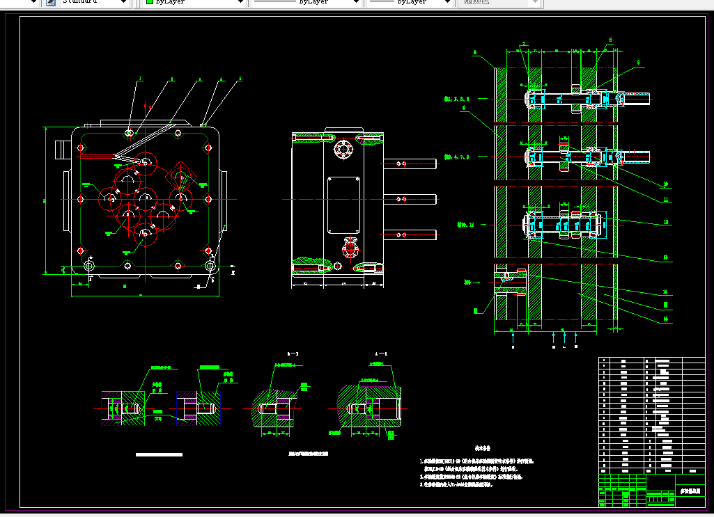 (3)、组合机床部件设计 包括专用多轴箱的设计,传动布局合理,轴与齿轮之间不发生干涉,保证传动的平稳性和精确性。专用主轴设计、轴承的选用及电机的选择等。