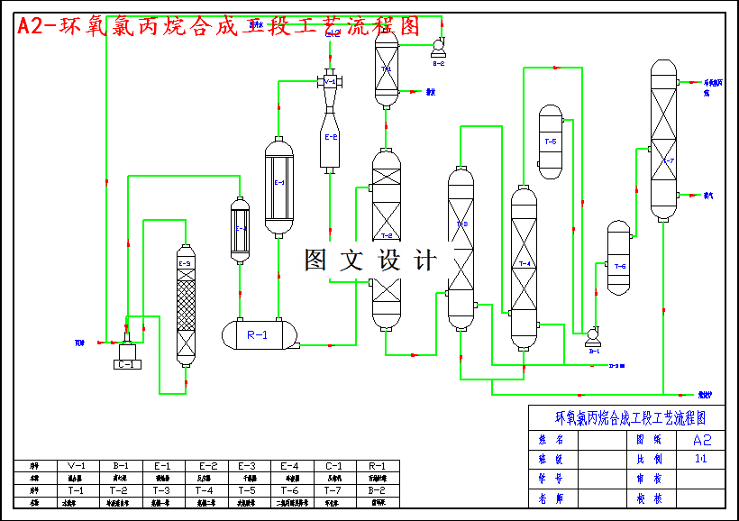 环氧氯丙烷是一种重要的有机化工原料和精细化工产品,用途十分广泛。以它为原料制得的环氧树脂具有粘结性强,耐化学介质腐蚀、收缩率低、化学稳定性好、抗冲击强度高以及介电性能优异等特点,在涂料、胶粘剂、增强材料、浇铸材料和电子层压制品等行业具有广泛的应用。工艺流程设计是工艺设计的基础。工艺流程设计是工厂设计中最主要的内容,是工艺设计的核心。因为工艺流程设计的质量直接决定车间的生产产品质量、生产能力、操作条件、安全生产、三废治理、经济效益等一系列根本性问题。工艺流程设计,物料衡算,主要设备的计算和选型,画出工艺流程图,全厂平面图以及各车间平面布置图。
