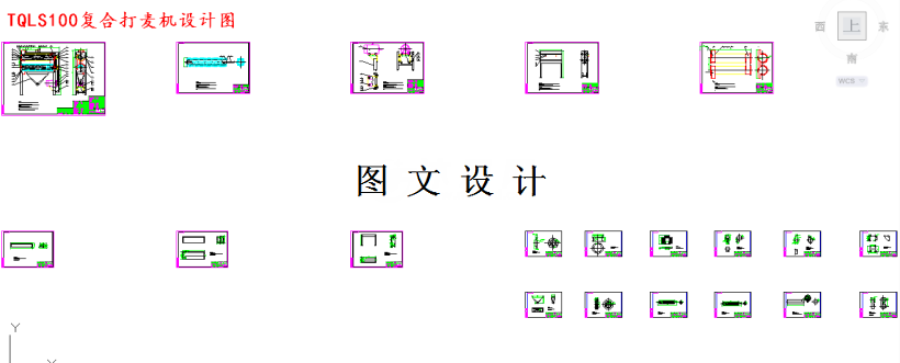 结构:打麦机的结构由机架、机体、进料口、出料口、筛桶、吸风口、打板和传动等部件组成,机体的周边粘贴有橡胶密封材料,因此密封性能良好。使用V带传动时在传动机构的下方配备张紧装置,可调节V带张力。打板为直板或销柱形,成一定角度按照螺旋形排列在打板轴上。 工作过程:打麦机在工作的过程中,打板随转子告诉旋转。小麦从切线方向进入机体,受到打板叶片撞击沿叶片的法向运动,由于叶片与转子成一定的角度,与其他设备串联在一起,它的生产效率应该与前后连接设备的效率相等。既不能有过多的功率余额造成能源浪费,也不能有生产能力不足的缺陷导致生产力不足。这就对设备本身的参数有一定的要求,电动机选择要通过相应的计算。需要解决的问题是各部件的设计和尺寸的确认,各部件的相互配合协调工作是打麦机正常工作的基础。