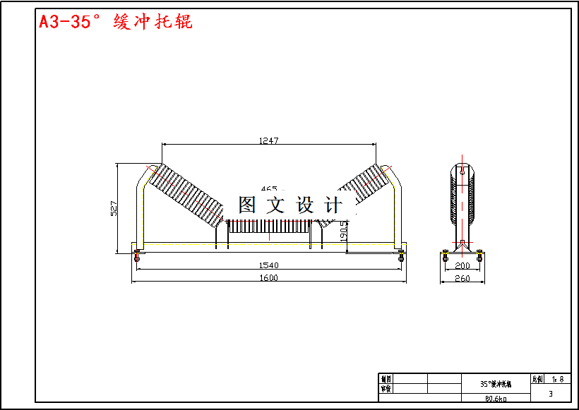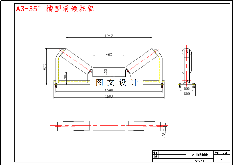 原始数据: 1)输送物料:原煤(无烟煤) 2)物料特性:(1)块度:0~300mm (2)散装密度:900kg/m3 (3)物料静堆积角:45 (4)物料温度:<50℃ 3)工作环境:井下 4)工作制度:br=360天,t=16小时 5)输送系统及相关尺寸:(1)输送距离:1000米 (2)倾斜角:16 (3)矿井生产能力:900t/h (4)运输不平衡系数:1.2 由输送能力初选带速v=2.5m/s,带宽B=1200mm,输送机布置如图3.1所示,上托辊间距αo=1200mm,下托辊间距αu=3000mm,托辊槽角λ=35,托辊辊径133mm,导料槽长度4000mm,托辊前倾角123’。