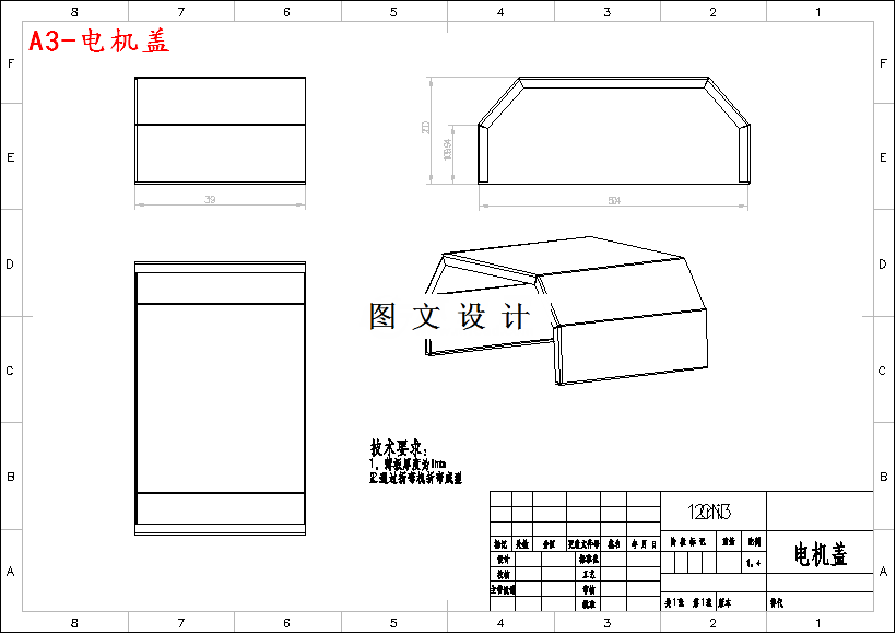 本设计要求只需绘制CAD二维图纸,三维图纸不做要求。设计中只需要图片截图作为补充即可。炒货是指植物果实经过晾晒、烘干、油炸等加工方法制成的供人们闲暇时食用的一类休闲食品。自动燃气炒货机的工作原理为利用减速电机通过链轮链条传动从而带动滚筒匀速转动从而实现在滚筒下方加热下而均匀受热,实现滚筒内货物的加热。通过在滚筒中安置安置涡旋式片叶,通过电机的正反转实现货物的进出。本设计通过对计算机辅助设计软件的使用实现对各机构的设计及出图。本设计的自动燃气炒货机结构简单,入料出料简单实用具有很好的推广价值。
