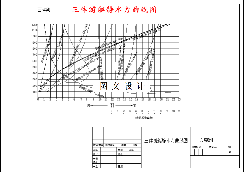 本次设计的具体任务为三体游艇的方案设计,该船航行于我国近海区域。 在设计过程中着眼于确保船舶的适用性,保证其能够较好地完成设计任务书中规定的使用任务。本次设计涉及多个方面,大体上来说,可以分为下面六个部分: 1、主要要素确定 根据设计任务书的要求,初步确定设计船的主尺度、船型系数和排水量等主要要素,并对其稳性、航速、容积等进行校核,最终确定设计船的主尺度。 2、型线设计 根据已经确定的主尺度,水线以上部分自行设计,考虑型深、布置等方面的要求,同时注意与水下部分型线的配合,最终得到设计船的型线图。 3、总布置设计 按照规范要求并参考60ft豪华游艇母型船进行总布置设计,区划船主体和上层建筑,布置舱室设备。 4、静力学及完整稳性计算 对设计船的装载情况、浮态、初稳性、完整稳性等进行计算,并绘制静水力曲线、舱容要素曲线、稳性横截曲线、静稳性曲线和动稳性曲线等,以确定设计船满足设计任 务书和规范的要求。 5、快速性计算及喷水推进器的概述 介绍喷水推进器的外形结构和工作原理,分析喷水推进器的特点及优势。 6、船体结构设计 按照按照CCS《游艇入级及建造规范(2012)》和《高速艇设计建造手册》的规定,对设计船进行结构设计,选取构件,并校核总纵强度,以保证结构设计合理。最后绘制典型横剖面图。
