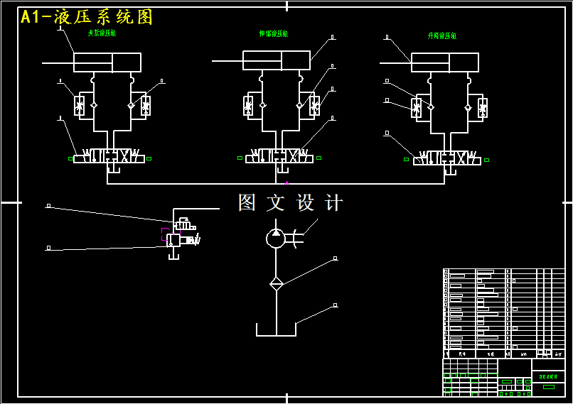 工业机械手是用液压为动力可以代替人工工作的一种机械设备,它是机械制造智能化、自动化的重要应用手段。本设计应用实体设计技术,对圆柱坐标机械手的底座、升降臂、伸缩臂及手部夹持四个部分进行设计以及简单的 PLC 控制。底座选用液压驱动技术,由筒体和回转体组成,利用液压泵旋转驱动回转体支承从而实现底座回转运动;升降臂利用液压泵直接驱动滚珠丝杠控制旋转,带动滑台上升下降, 采用圆柱形导轨导向方式;伸缩臂采用伺服电机直接驱动滚珠丝杠带动手臂伸缩;手部夹持选用连杆机构,采用液压驱动,实现夹持运动。