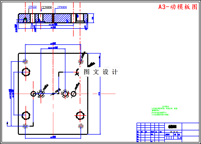 材料:ABS小批量生产侧浇口一模两腔侧抽芯定位圈尺寸:注射模安装用定位圈外径应与注塑机定位孔内径呈间隙配合,定位圈高度应小于定位孔深度。 所以根据所选注射机的参数,定位圈直径: 160mm。模具外形尺寸:模具长度尺寸应与注塑机的拉杆内间距相适应,应小于600×600,以保证模具至少能从一个方向穿过拉杆间的空间安装在注塑机上。此套模具属于小型模具,工件上有侧抽芯结构,注射成型的气体可以通过先抽芯的孔进行排气,所以不必考虑单独开设排气槽等排气系统。