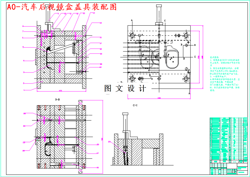 设计件为汽车后视镜盒盖,如图3-1所示,材质为ABS,生产批量为10000件,即大量生产,塑件的体积为v=357.314cm,质量为m=v*ρ=357.214*1.07=0.382kg。模具的分型面一般选为塑件的最大截面处,这样既可以方便模具的设计,也可以使塑件的分型抽芯更为简便,减少不必要的结构设计;另外,模具的分型面设计一般要有利于苏建的分型和取出,并且尽量将塑件留在动模一侧,这样也可以让塑件更加顺利的取出;其次分型面的选择还要尽量有利于模具的加工制造和模具中气体的排出,模具中气体的顺利排出也是模具设计中一项重要的工作,对此也要加以重视。 综上所述,结合本次汽车后视镜盒盖的设计的具体情况,此次模具设计采用的是一模两腔的纵向排列结构设计,大大简化了模具加工的难度,节约了设计与制造的成本,其分型面的选择也在塑件的最大截面处。