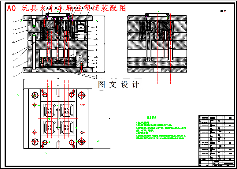 本课题是玩具火车车厢的注塑模具设计。本设计对玩具火车车厢零件进行了工艺分析,并确定了玩具火车车厢的成型方法。由于此塑件是儿童玩具,所以材料的选择原则是避免使儿童受到伤害,此次塑件材料采用ABS,同时根据要求为大批量的生产,所以为了满足其生产要求,即采用一模四腔的方式。为了保证玩具的外观审美要求,这里的进料方式应选在分型面上设计侧浇口。在设计模具时,应校核准确锁模力,避免塑件产生较大的飞边,飞边的产生会对使用者造成不必要的伤害。顶出机构的合理配置,也是模具成型的关键所在,方便塑件的成型,更有利于塑件的脱落。