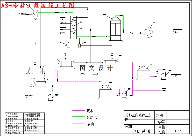 本设计是年产150万吨焦炭焦化厂冷鼓工段的工艺设计。根据设计任务书的要求,对冷鼓工段原理进行了解,并分析了工艺流程,做出选择比较,设计中对整个冷鼓工段进行了详细的热量衡算和物料衡算,并对其主要的设备,例如横管初冷器、电捕焦油器、鼓风机、机械化氨水澄清槽等进行了详细的计算和选型。同时对其做出了工艺计算,达到了所需规格和性能的要求。本设计还对冷鼓工段的非工艺条件进行了设计、选择,使冷鼓工段更加完善。在冷鼓工段中,本设计应用了国内一些焦化厂的改进技术,具有一定参考价值。