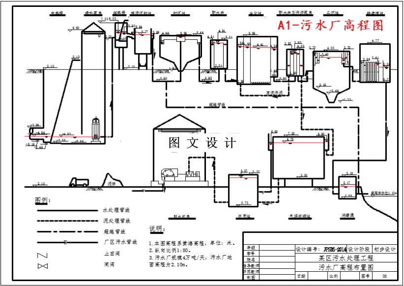 江苏某市日处理4万吨污水处理工程初步设计,江苏省某市某区排水系统较为落后,一直以来生活污水和工业废水基本上未经处理达标就直接排入附近水体,造成水体污染较为严重。为了保护附近水体水质,实现某市的可持续发展,某城区的污水厂建设已经刻不容缓。 本设计是江苏省某市某城区的排水工程,其中由两部分组成,即:城市排水管网系统的设计和城市污水处理厂的设计。 根据城市污水厂规模和所处地理位置,并结合考虑处理脱氮除磷的要求,城市污水处理厂采用倒置A2O工艺。该工艺污水流程为:中格栅提升泵房细格栅沉砂池初沉池缺氧池厌氧池好氧池二沉池转盘滤池消毒渠出水排放。污泥处理流程为:污泥污泥提升泵房污泥浓缩池匀质池脱水机房泥饼外运。通过此工艺的处理,出水水质达到《城镇污水处理厂污染物排放标准》(GB18918—2002)一级A标准。