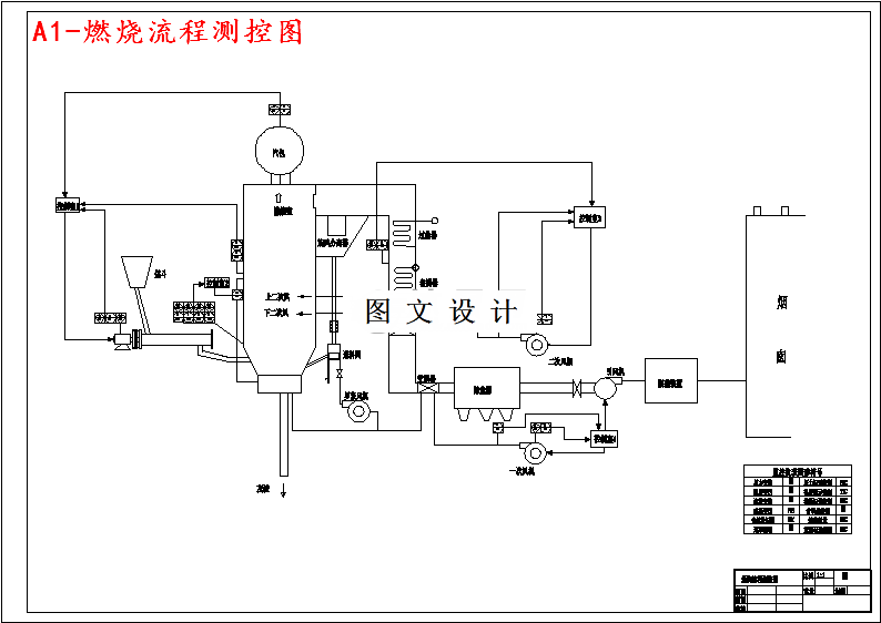 以130t/h循环流化床锅炉系统为对象对循环流化床锅炉燃烧过程进行控制。燃烧系统的控制目标是在安全燃烧(控制床温的稳定,避免结焦与熄火事故的发生)的前提下,基本维持锅炉主蒸汽压力的稳定。循环流化床燃烧技术核心在于硫化燃烧,物料循环及燃烧脱硫。循环流化床锅炉的的床温,烟气含氧量,负荷,一、二次风比例等因素影响锅炉效率及SO2、NOx等主要指标。自动控制系统的任务是通过调节给煤量、一次风量、二次风量、引凤量和飞灰返料量,达到稳定蒸汽压力、炉膛负压、含氧量,以保证最佳的流化状态。可以分为燃料控制,送风控制,床温控制、引风控制子系统。 主蒸汽压力的控制:主要通过调节输入的燃料量和送风量的多少来实现。炉膛内含氧量的控制:主要通过调节空气(即送风量)和燃料的输入成一定的比例来实现。炉膛负压的控制:主要通过调节引风机的引风量来实现。