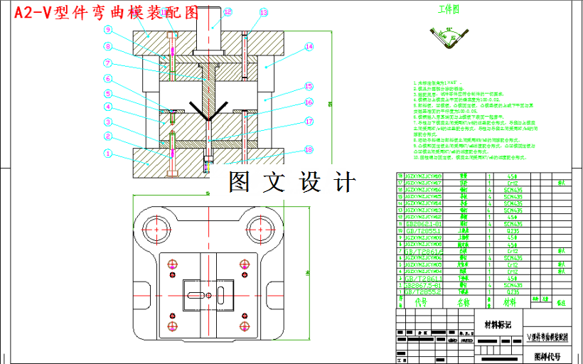 Q235号钢为普通碳素结果钢,性质较软,具有较好的弯曲性能,弹性模量E=200~220GPa ,抗拉强度σb=375~500MPa。该弯曲件外形简单,精度要求不高,工件厚度小,可以采用单工序模弯曲,且定位精度易保证。冲压工艺分析可知,采用单工序冲模,所以采模具类型为单工序模。因为工件料厚为1mm,相对较薄,卸料力不大,故可采用弹性料装置卸料。