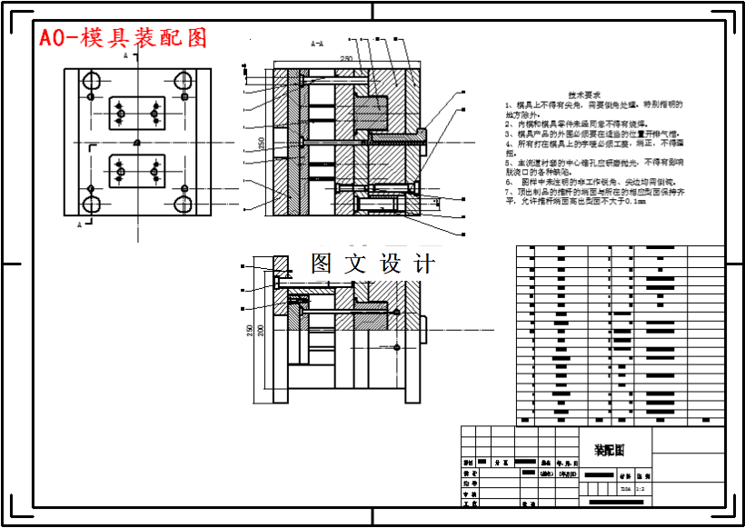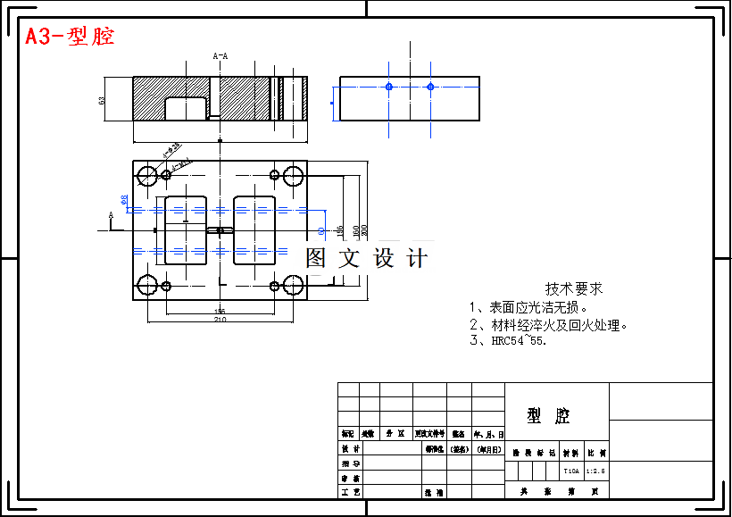 根据设计要求可知型腔数采用一模两腔。结合型芯型腔尺寸,预取,B×L=200×250,导柱Ф=20mm,由于型腔底部厚度为20mm,考虑增加A板强度,预设计A板厚度为25mm,参考表4-2,取B=63mm,B2=25mm,C=50mm,定模固定板与动模固定板各取25mm,A1型模架总高H=32+A+B+C=213mm。由于是大批量生产,导柱采用正装有肩导柱,故模具确定为A2-200250-18-Z1。
