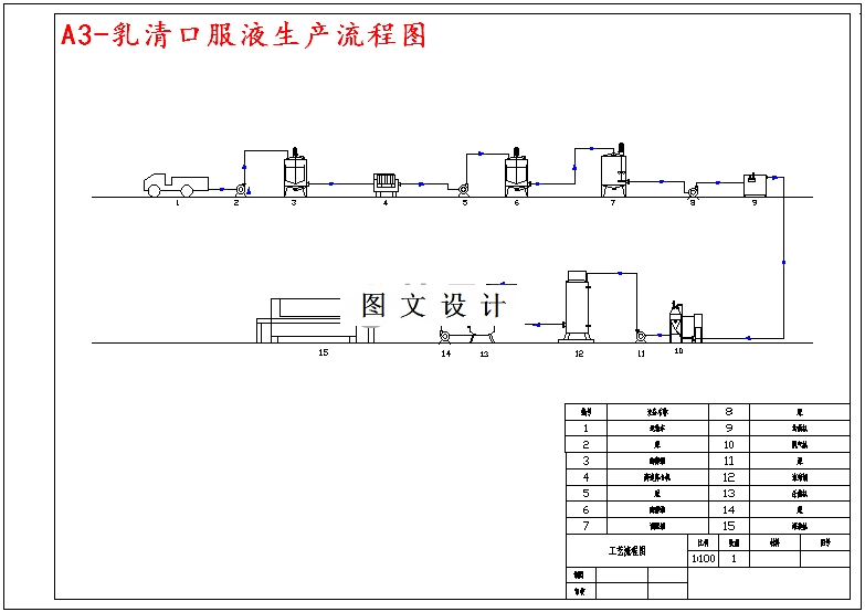 本设计在乳清双酶水解口服液的最佳生产工艺的基础上,通过产品方案的确定、设备选型、耗水电气量的计算、管路设计等拟设计一个年处理原料3000吨,生产规格为300ml/瓶的乳清口服液10000瓶。本实验以乳清为原料,以水解度(DH)为评价指标,选用碱性蛋白酶对乳清蛋白进行水解。在单酶水解的前提下,利用乳糖酶水解乳清中的乳糖,以解决部分人群的乳糖不耐症。并且利用橙汁、蜂蜜、柠檬酸对产品进行风味及稳定性的调配,进而生产出口味适宜、结构稳定的营养口服液。