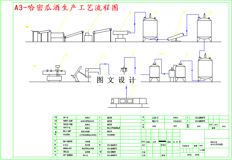 本设计在哈密瓜酒最佳酿造工艺的基础上,通过产品方案的确定、设备选型、耗水电气量的计算、管路设计等拟设计一个年产量300KL12°哈密瓜酒,生产规格为瓶装500mL,共计60万瓶。本实验以哈密瓜为主原料设计哈密瓜酒的生产工艺,利用微生物发酵技术,在单因素实验法的基础上以菌种接种量、发酵温度、初始发酵pH和SO2添加量做正交实验,以果酒的酒精度、酸度和感官评定作为评判指标,确定哈密瓜酒的最佳生产工艺条件。本实验的创新点主要有以下两方面:首先,实现了资源的合理利用,使原料价值最大化。其次,本产品以哈密瓜酒为原料,基本上保持了哈密瓜中的天然营养成份,迎合现今“功能食品”和“绿色食品”的市场消费趋势。
