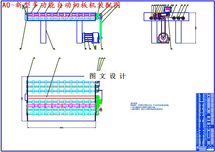 本设计是在传统切板机的基础上,对切板机工作台、进给传动机构以及切刀的安装方式等进行了改造。将切刀轴和压板轴的固定机构设计成可通过丝杠进行调节的形式,从而实现了对不同厚度板材的切割;通过调节套筒的大小可以任意调整切刀的位置,从而实现对不同宽度板材的切割;在进给方向上安装长度感应器,可以灵活控制机床的纵向进给运动,从而实现准确长度的切割要求。所设计的新型多功能自动切板机可以同时实现横向、纵向的一次性切割,可以一次性切割多块板、多种板,具有结构简单,操作方便、工作效率高、制造成本低等优点,能够扩展切板机的加工范围,降低劳动强度,节约设备购置成本,避免了传统切板机被淘汰。