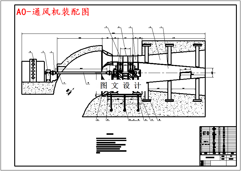 根据流量和风机压力,轴流风机的设计,风机的主要部件:集流器(流出通道和回路组成),前端螺旋桨,后驱动器,后面板指导 ,主风机,中间通道,扩散筒(外管和基管扭管)等。两级叶轮结构相同,引导线和引导板的底片结构相同。发动机位于风机出口侧。在发动机和风机的驱动轴之间。设计必须以主要结构组件结束,并使用AutoCAD绘制相关图纸。