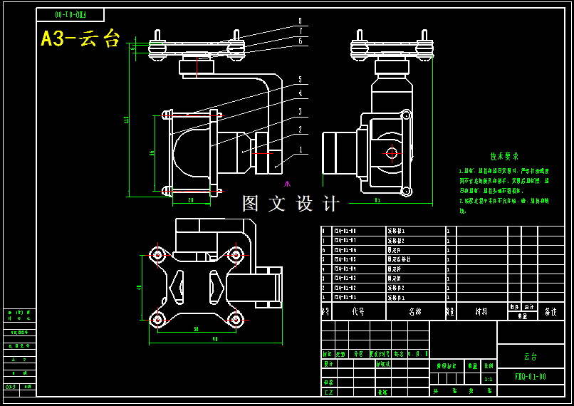 四旋翼飞行器是一种可用于运载和监视的无人飞行器。它能够使用四个垂直导向的旋翼产生向上的升力。每一个螺旋桨(两个顺时针旋转,其他两个逆时针旋转)通过一个三相无感无刷直流电机实现旋转。可通过改变每个旋翼的转速,使飞行器的推力和升力发生改变,从而使其执行空中运动,包括俯仰、滚转、垂直、偏航、前后、侧向运动,高度调整等。一般由遥控器发送PWM命令到飞行接收器上,来改变每个电机的转速。发射器至少需要六个通道,每个通道支持飞行器的一个自由度:俯仰、滚转、垂直、偏航、前后、侧向。进行四旋翼飞行器总体设计时,第一要依据它的作用和使用价值选择合适的材料,到达能使飞行器在基本满足功能的情况下,质量可以尽可能地减轻;其次,还要综合考虑它的各个参数,例如重量、尺寸、飞行速度、能耗等等。因此,本次设计拟解决的问题如下:1.设计飞行器的机械结构,从选材和受力受阻的方面去优化机构,使其质量尽量轻,能够防水、防撞;2.设计和优化云台的机械结构,确保云台在飞行过程中能够稳定防震;3.设计传感器的电路,在飞控板上选择合适的位置安放各个所需传感器;4.进行飞行调试。