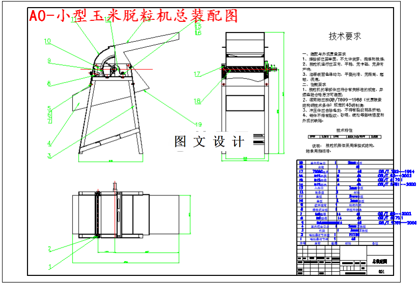 本设计基于各种脱粒机的结构,主要研究玉米脱粒机的传动系统的结构、工作原理,并在此依据基础上完成零部件的设计,并依据相关机械设计软件来完成零部件的设计。一般机械设计方法,通常多从总体方案开始,在总体方案中又首先从机构的分析开始,确定方案后再进行必要的设计计算和结构设计,最后以完成的设备图纸和设计计算书作为整个设计计算的成果。为了减轻农民的劳动强度,提高农业作业的机械化程度,填补农业机械的一项空白,针对玉米盘本身特征进行设计,在脱粒时纹杆滚筒高速旋转,使玉米在栅格式凹版与滚筒之间不断被纹杆打击,而这个作用又使玉米棒之间不断互相碰撞,以达到籽盘分离,然后净粒,完成脱粒。