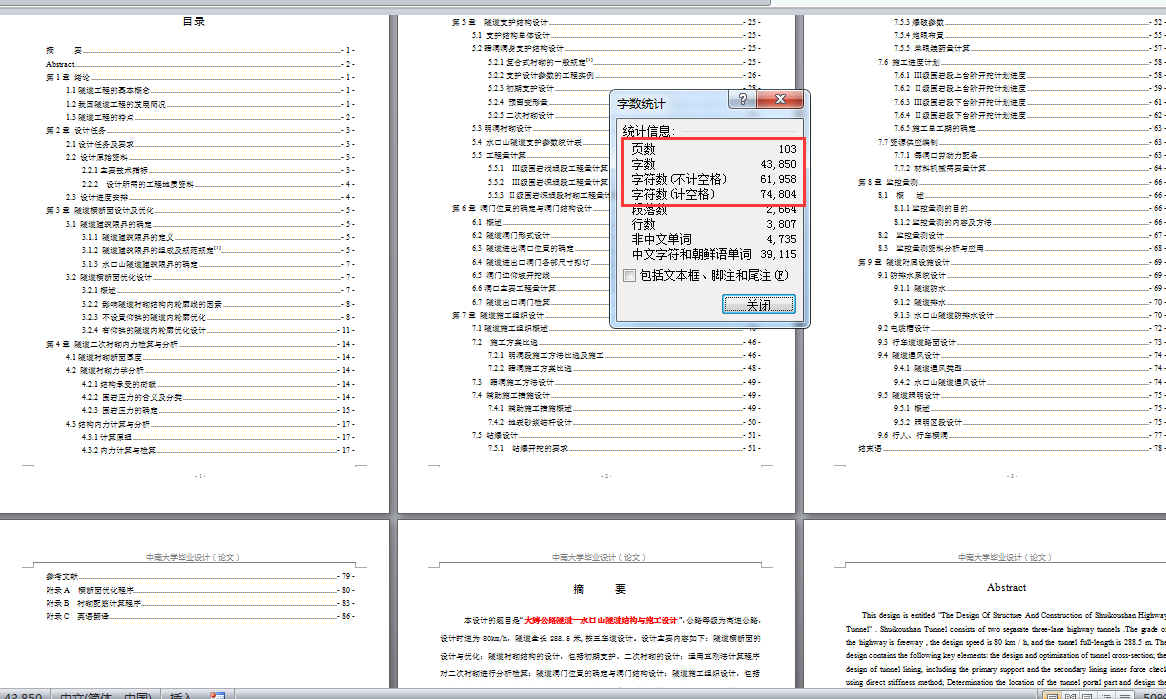 (2) 隧道设计图纸6-7张及其设计说明书一份;