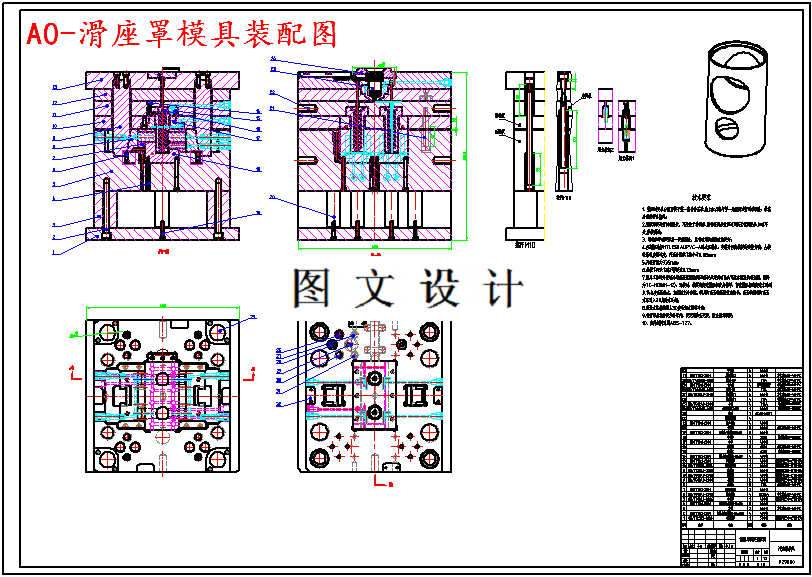 本次设计的产品滑座罩,底部较厚,侧壁较薄,转角采用九十度角过度,侧壁有3个侧孔,表面光滑平整。表面需要电镀,不能有任何痕迹,因此设计了热流道结合冷流道点浇口从产品内部进浇的浇注方案,在模芯内部开设双螺旋水路,模腔开设尽量贴近产品表面的隔板水路。本次设计采用CAE软件Moldex3D对产品的充填、保压、冷却、翘曲变形进行模拟分析,从充填温度、剪切应力、缝合线温度、保压压力、体积收缩率、翘曲变形等方面进行了判读对比,确定了点浇口的直径为2mm,变模温水路加热时通入140℃的热水,冷却时通入30℃的冷水。设计了斜滑块机构实现了滑座罩侧孔的抽芯,顶出方式则采用脱模板推出。完成了滑座罩的实体建模、2D图纸、非标准零件图绘制和加工工艺编制。最后对模具生产周期和成本进行预估。