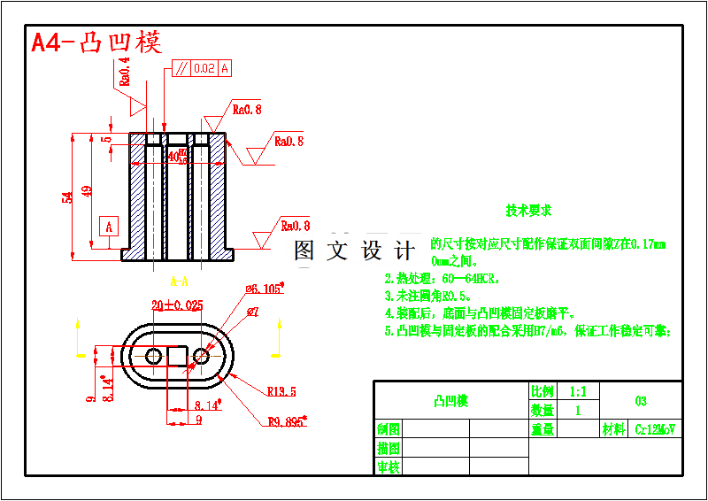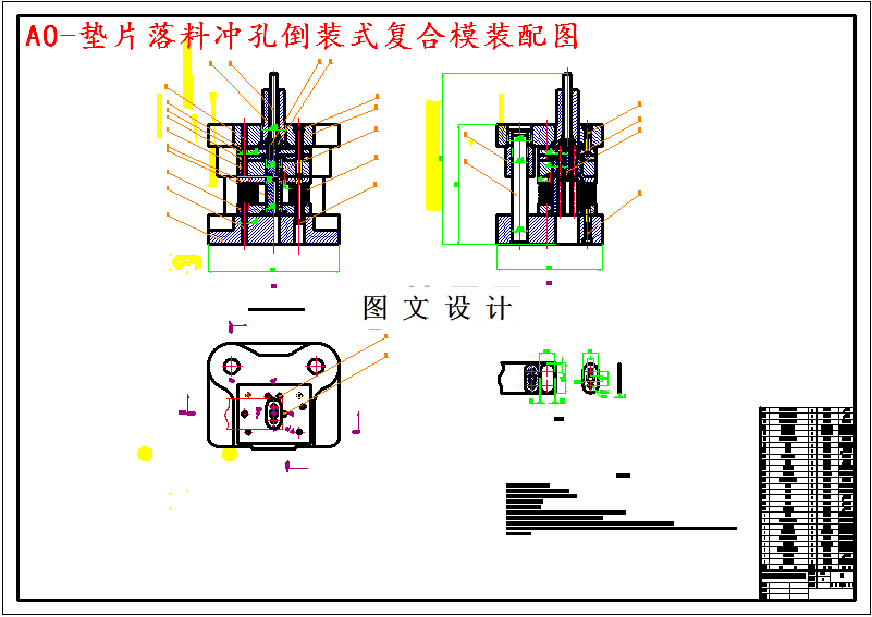 本设计为倒装式落料冲孔复合模模具设计,体现了板类冲压零件的设计要求、内容及方向,有一定的设计意义。通过对该零件模具的设计,进一步加强了设计者冲压模具设计的基础知识,为设计更复杂的冲压模具做好了铺垫并吸取了更深刻的经验。因为工件平面度要求不高,拟定采用倒装式复合模。现对倒装式复合模中凸凹模壁厚进行校核,当材料厚度为1mm时,可查表3-14得倒装式复合模的凸凹模最小壁厚为2.7mm,现工件上的最小孔边距为3mm,所以可以采用倒装式复合模。699075