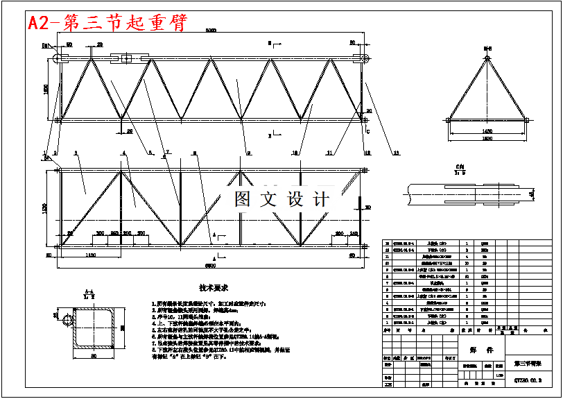 塔式起重机是一种能在一定范围内垂直起升和水平移动物品的机械,是现代化工业与民用建筑中的主要施工机械。本次设计是关于塔式起重机的传动部分,目标是使塔式起重机所提起的重物能够正常的升降以及让小车能够在横梁上水平的运行。首先,根据已知条件确定好设计的传动方案;然后,根据传动方案所提升的负载选择电动机,在依次选择选择蜗杆传动减速器、联轴器、制动器等;接着根据起升高度设计卷筒以及钢丝绳的设计计算,最后是对小车的设计计算;根据上述所选出的标准件以及零部件应用工程软件绘制出塔式起重机的装配图,根据装配图拆出塔式起重机的零部图。设计塔式起重机构时,根据机构传动选择标准元件实际情况进行零部件的强度和寿命校核验算。最后把计算结果整理成设计说明书。