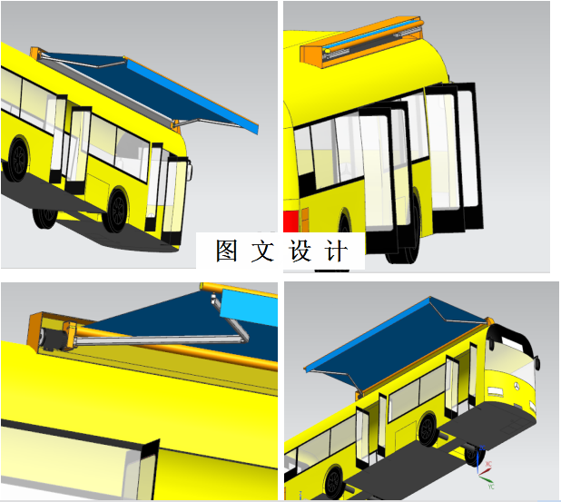 本设计以UG为主要设计软件,结合城市中现有的公共汽车尺寸,进行公共汽车车身的三维建模。在公交车三维图的基础上设计一款伸缩式遮雨机构,同时结合公交车与站台距离确定遮雨机构尺寸[2]。最终设计出一款符合实际需求的公交车上下车遮雨机构,并得到其三维图及二维图纸。