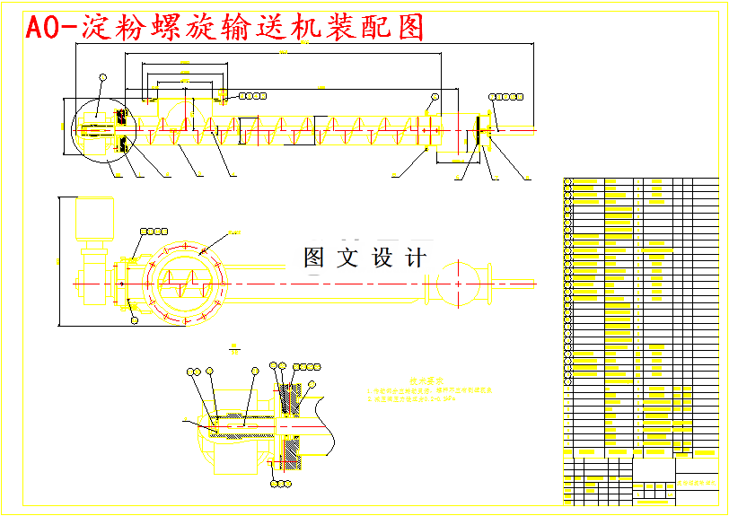 主要介绍了淀粉螺旋输送机的设计依据,淀粉螺旋输送机的结构。三维结构图可以使读者对其结构有清晰的认识,同时也介绍了淀粉螺旋输送机设计参数的选择、其主要零部件的设计计算及其安装与调试等。在满足淀粉螺旋输送机使用要求的前提下, 减小螺旋体质量有利于节约材料和降低成本, 同时也便于机器的移动,所以本设计中为了减小螺旋体的质量,螺杆采用实体轴与空心轴焊接的形式。而为了提高淀粉螺旋输送机的输送精度,首选螺杆尾部采用搅拌装置,它可以将结块的物料破碎,使物料均匀下料。其次螺旋叶片采用变螺距螺旋,这种结构并不影响输送能力,而且它的变螺距结构能防止物料被压实。