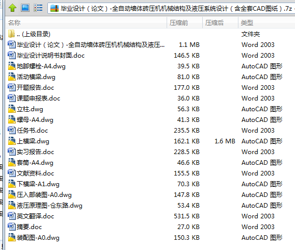 本课题采用传统理论方法对全自动液压墙体砖压机机身结构进行设计、计算、强度校核,采用AUTO CAD 设计软件对上横梁、底座、上活动梁、下活动梁、主液压缸、立柱、总装图进行了工程绘图,在参考了某公司生产的四梁四柱液压墙体砖液压机液压系统以及查阅了大量关于液压系统设计的书籍后,确定全自动数字控制系统的设计方案,绘制了液压系统图,给出了电气系统的工作说明书,并对其进行了可行性分析,最后对整个设计进行系统分析,得出整个设计切实可行。