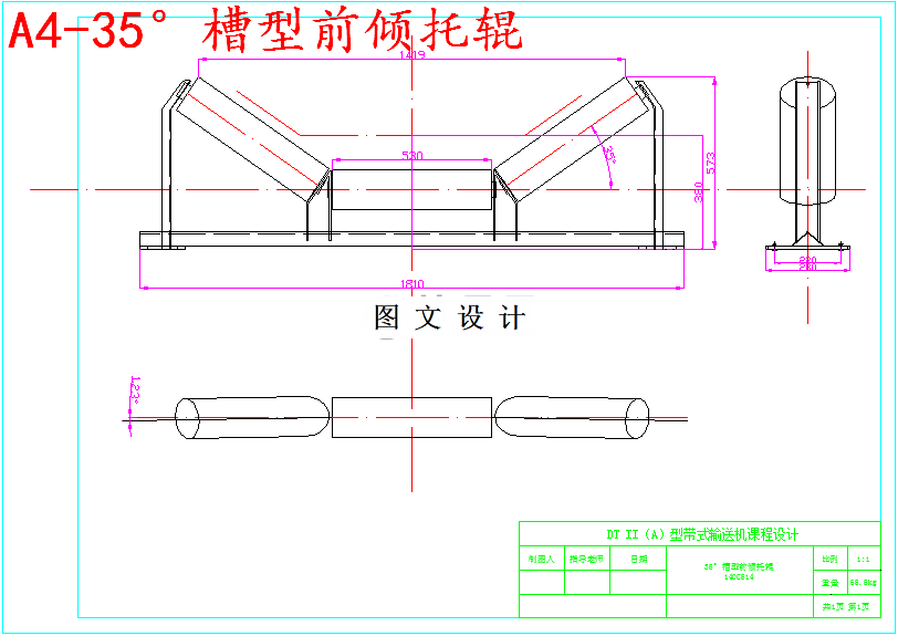已知参数 (1)带式输送机布置形式及尺寸 (2)输送能力Q=1800t/h (3)输送物料:煤炭,粒度0300mm,堆积密度1.0t/m3 (4)机长:L=440m,提升高度H=18m,设倾斜角度14° (5)工作环境:海边露天作业 671496