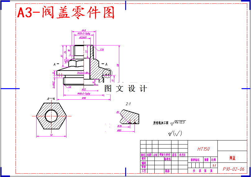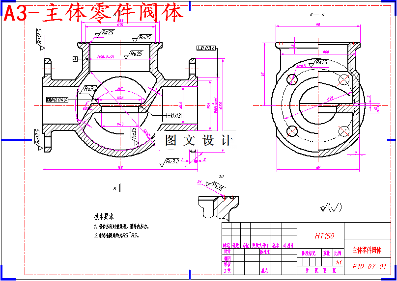本设计任务是根据现有的锥阀零件图图,经过零、部件测绘验证,画出零件工作图,并拼画出部件的装配图;本设计的主要主要设计思想是针对现有的零件图,通过对产品功能、需求、形状设计、工艺设计,可行性等方面的分析,运用工程制图的投影原理及CAD建模手段,以设计小组分工合作的方式,实现其完整装配图和一整套零件图的设计测绘任务;本人在这次设计任务中担任了锥阀装配图,阀体、阀盖、阀门、填料压盖、压盖螺母、螺母、手轮的图样和三维建模工作,零件图和拼装的装配图相互吻合。锥阀的开启是转动手轮,通过方头带动阀杆旋转,再通过阀杆与阀盖之间的梯形螺纹连接即可使阀杆上下移动,通过卡环带动阀门上下移动,实现锥阀的开关,亦可调节流量大小。考虑到锥阀的阀杆开启或关闭行程相对较短,而且具有非常可靠的切断功能,并且,阀杆与阀盖间通过梯形螺纹连接,内外螺纹贴近不易松动,可承受传力矩较大,非常适合于对流量的调节。说明书前半部分详细介绍了锥阀的产品功能需求,后半部分说明了部分零件的形状选型及其制作工艺,部分零件的可行性与日常维护。
