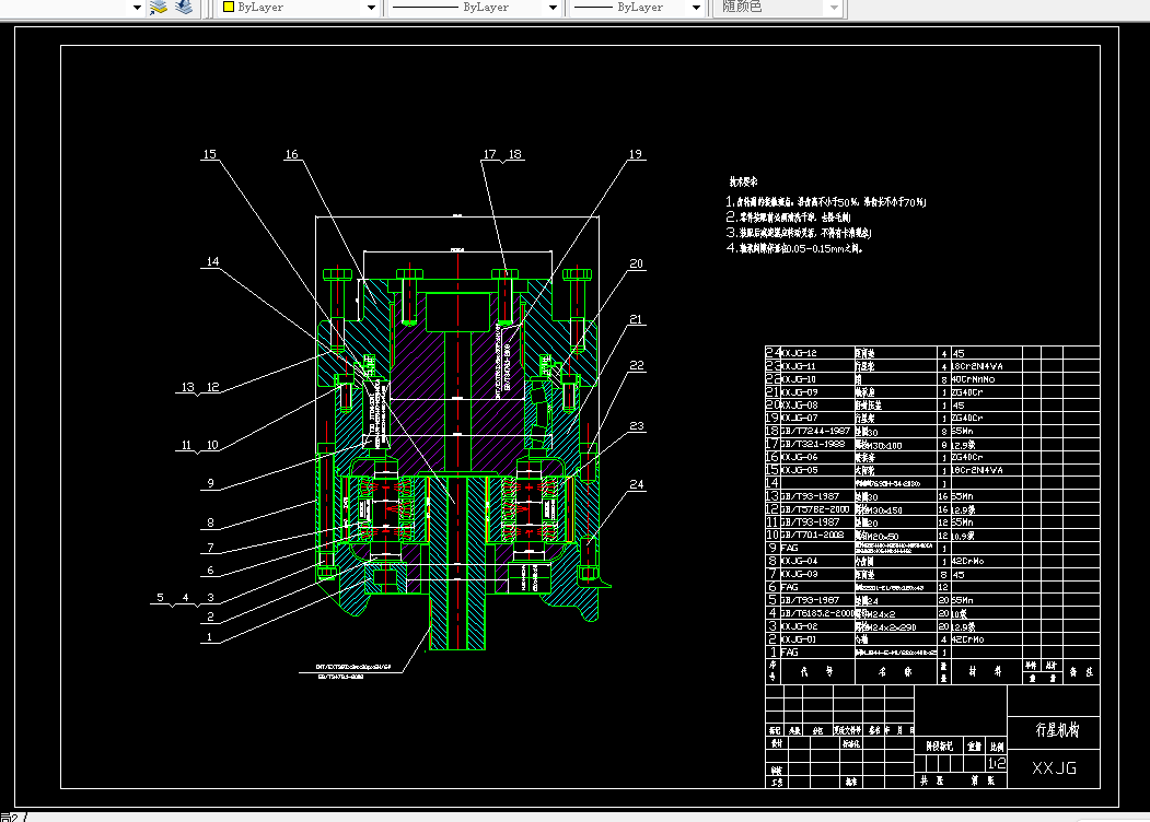 首先在调研后,确定方案可行后,确定总体的设计方法,在此基础上进行展开设计,对传动方式进行横向对比分析,从中择优,进行结构简图的绘制,最终选择三级直齿减速和一级行星减速传动,减速后驱动滚筒输出,分配传动比后进行计算,选择材料后,最后进行齿轮、轴、轴承等的结构设计和校核以及寿命计算,对截割部的结构调整,拆装进行分析探讨。本设计有比较好的设计性和实用性。