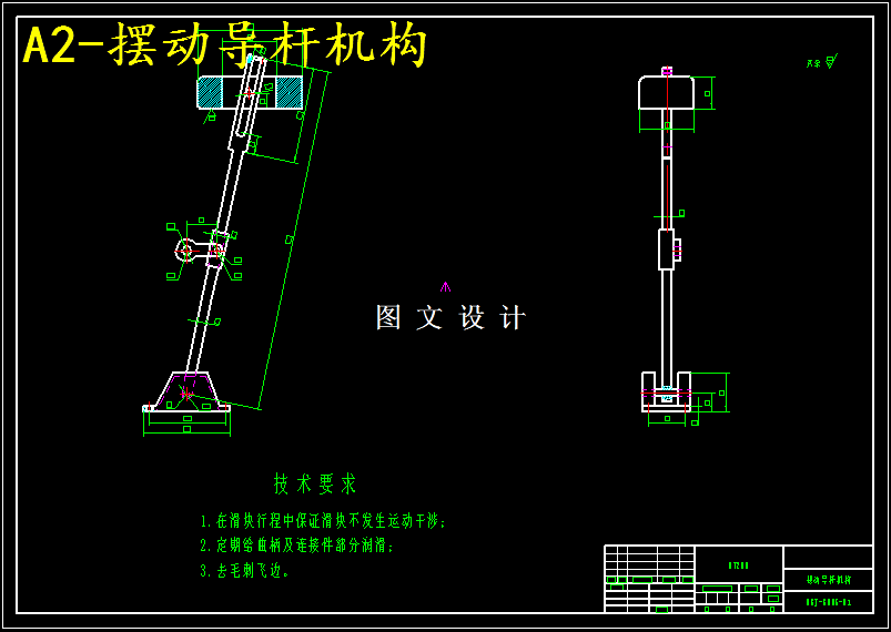 本设计围绕着打标机自动上料和下料机构进行了深入的研究和设计,具体内容包括:上料机构采用了将物料预先放置在料仓中,通过摆动导杆机构,使导杆产生往复运动,来带动滑块将料仓中的物料重复不断地推入下一道工序;通过转盘来实现定位,推料滑块将物料推入转盘的物料槽中,并且通过槽轮机构使得转盘可以产生间歇运动,将送入的物料转送到打标工序的工位;打标完成后,再由转盘将物料转入下一个工位,通过物料自身重力的作用,使得完成打标的物料滑入卸料槽中,完成卸料动作。本次设计的上下料机构的结构比较简单,方便操作人员的操作,也能很好的节约成本。