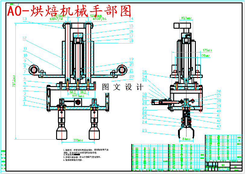 通过了解的组成和机器人的分类,以及国内外形势的成长,为整体方案设计,确认四个自由度和直角坐标型机器人。本机械手为烘焙类食物流水线自动装夹机械手,故设计了机械手的夹持式手部结构。计算出了手腕转动时所需的驱使力矩,确认了相关尺寸,设计了机械手的腕部结构;设计了机械手的手臂结构;设计了手臂伸缩,升降用机械限位。