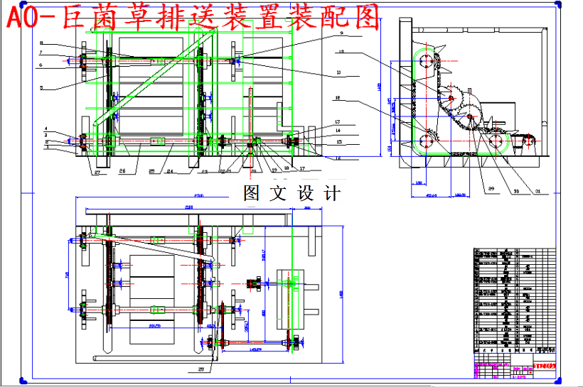 本次设计的巨菌草的排送系统不仅可以实现将切割完的巨菌草从正前方传送到侧边,还可以使其整齐的倒放在打捆机上进行打捆方便后续的运输。该机构机构简单、机体小、重量轻、所设计的排送系统机构尺寸紧凑。整体机构通用性与适应性好,能适用于多种拖拉机机型,较好地解决了收割机在各种复杂的地形难以收割的难题。
