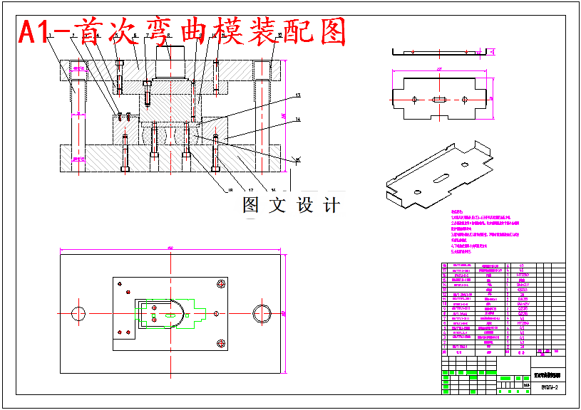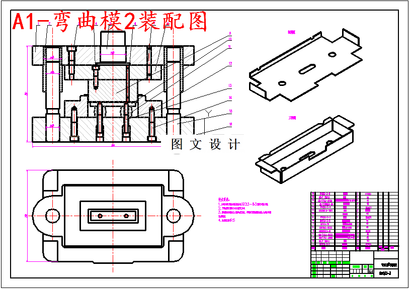 本次设计是对给定的变压器托架进行的冲压工艺及模具设计。变压器托架外形基本对称采用的材料是1mm厚度的不锈钢304,保证了足够的强度和刚度。首先在查阅相关资料和对零件形状仔细分析的基础上对该零件进行冲压工艺分析,有落料、冲孔、弯曲等一系列工序。然后在综合考虑零件的经济性、冲压工艺性以及复杂程度等因素的基础上对冲压模具进行选择,经过计算分析得出落料、冲孔采用复合模一次完成,弯曲成形部分采用两次弯曲。零件毛坯展开尺寸的计算是根据冲压工艺中弯曲变形的计算原则进行的,经过计算分析完成各套模具的主要设计计算,凸模、凹模工作部分和刃口尺寸的设计计算,还有零件的定位紧固和主要零件的结构设计,选择合适的模具材料。弯曲成形是板料立体成形的主要方法,以弯曲成形为主体的冲压件很多,在工业生产和生活用品中都有弯曲成形的制品,弯曲成形是冲模发展的方向之一。在对模具进行设计前必须对零件进行全面分析,然后确定最优的冲压工艺方案,正确设计模具结构和模具零件的加工工艺,获得最优的技术经济效益。