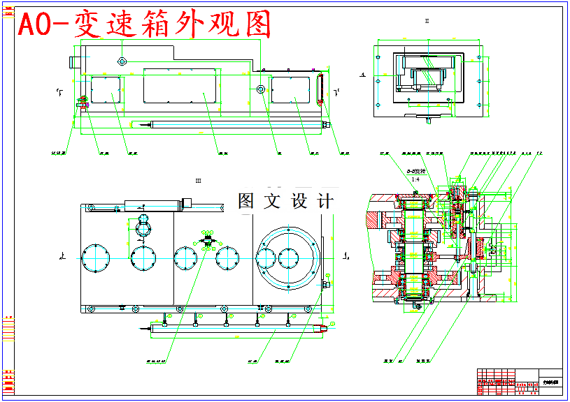 机床变速箱是机床中的重要的传动装置,机床运行性能的好坏很大程度上决定于机床变速箱的传动性能。机床变速箱主要是由变速传动机构和操纵机构组成。它将电动机和主轴联结起来,通过传动轴和齿轮以及其它传动件将电动机动力传递到主轴。变速箱中的变速机构通过改变传动比从而达到改变电动机运行状态的目的。保持合理的传动比可以使电动机工作在其最佳的动力性能状态下。本设计主要研究数控双柱立式车床的变速箱结构,它的变速箱体采用整体式铸造,传动形式采用斜齿圆柱齿轮传动,传动轴竖立放置,并联合使用拨叉、连杆、锁杆等机构实现变速箱的二级变速。