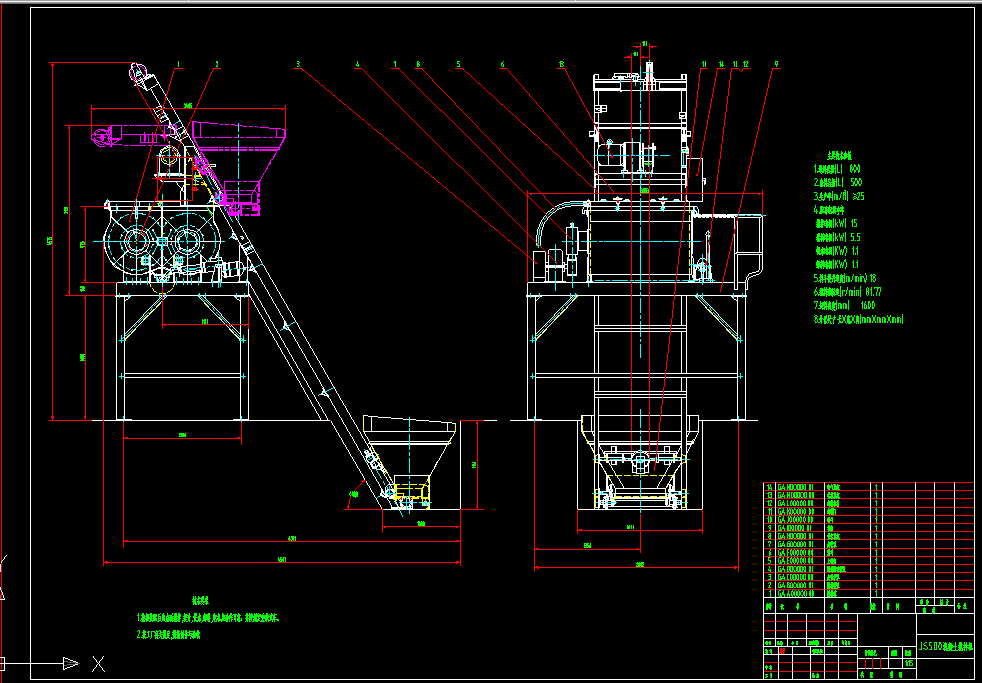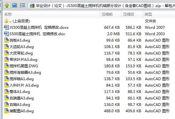 摘 要:本次设计的JS500混凝土搅拌机是我们的主要设计机型。它是强制式卧轴混凝土搅拌机中的一种,强制式混凝土搅拌机不仅能搅拌干硬性混凝土,而且能搅拌轻骨料混凝土,能使混凝土达到强烈的搅拌作用,搅拌非常均匀,生产率高,质量好,成本低。它是目前国内较为新型的搅拌机,整机结构紧凑、外型美观。工作时,物料在叶片推动下沿螺旋面移动,长期的生产实践证明,通过对卧轴式搅拌机的叶片结构和曲面形状进行合理的布置和设计,混凝土的质量和生产效率会有很大的提高。其主要组成结构包括:搅拌装置,搅拌传动系统,上料、卸料系统,供水系统,机架及行走系统,电气控制系统,润滑系统等。主要设计计算内容是JS500混凝土搅拌机机械部分的设计,主要包括:减速器的设计、减速器上所有部件之间相互位置的确定、减速器与搅拌筒的连接方式及安装位置、搅拌筒外形尺寸的确定、搅拌筒钢结构的选材,搅拌轴的校核、完成搅拌装置及零部件图。