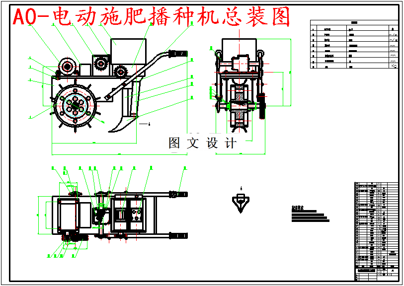 本设计在详述我国柴油机施肥播种机研究现状的基础上,对施肥播种机的一部分进行了改进设计,对动力部分进行了分析计算设计了电动机为动力的施肥播种机。太阳能手扶电动施肥播种机主要由传动系统、离合系统、调速系统、精细播种系统等部分组成。通过电动机给施肥播种机前轮供电,带动整个机械前进,在前进的同时通过摩擦离合器将动力传到盛肥料和种子的料斗,完成施肥播种作业。通过霍尔转把控制电动机的转速,也就控制了前进速度和播种速度,从而满足不同播种要求。精细播种系统的设计使得播种均匀,避免浪费。摩擦离合器的设计则满足了前进与施肥播种分离结合的要求。太阳能电池板的设计为电动机提供足够的电量,使得机械更加持久的工作。