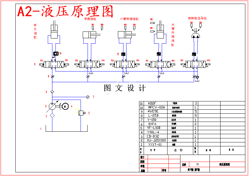 本设计介绍了机械手的自由度、坐标形式结构、液压驱动以及控制形式等,并依照设计要求先确定了机械手设计的总体方案,然后根据设计要求选择坐标形式为圆柱坐标的4自由度的卸料机械手。依据设计要求对机械手的小臂等进行了结构的设计计算。依据设计要求本机械手由底座旋转来带动大臂回转、液压缸的升降实现大臂的升降、液压缸的收缩完成小臂的收缩、旋转缸实现手腕回转和液压缸完成手指的开合。整个机械手系统采用plc控制。