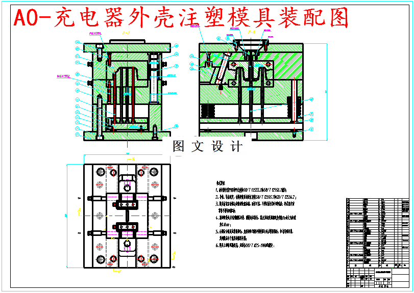对ABS充电器的了解,要满足制品大批量生产、高精度、外形复杂等要求,首先主要确定所需的模塑成型方案、制品的后加工、分型面的选择、型腔的数目和排列、成型零件的结构等。既然以实际生产为目的,设计就要涵盖了注塑模具的主要系统包括有注射机、浇注系统、排气系统、冷却系统、顶出系统、导向系统等。648901