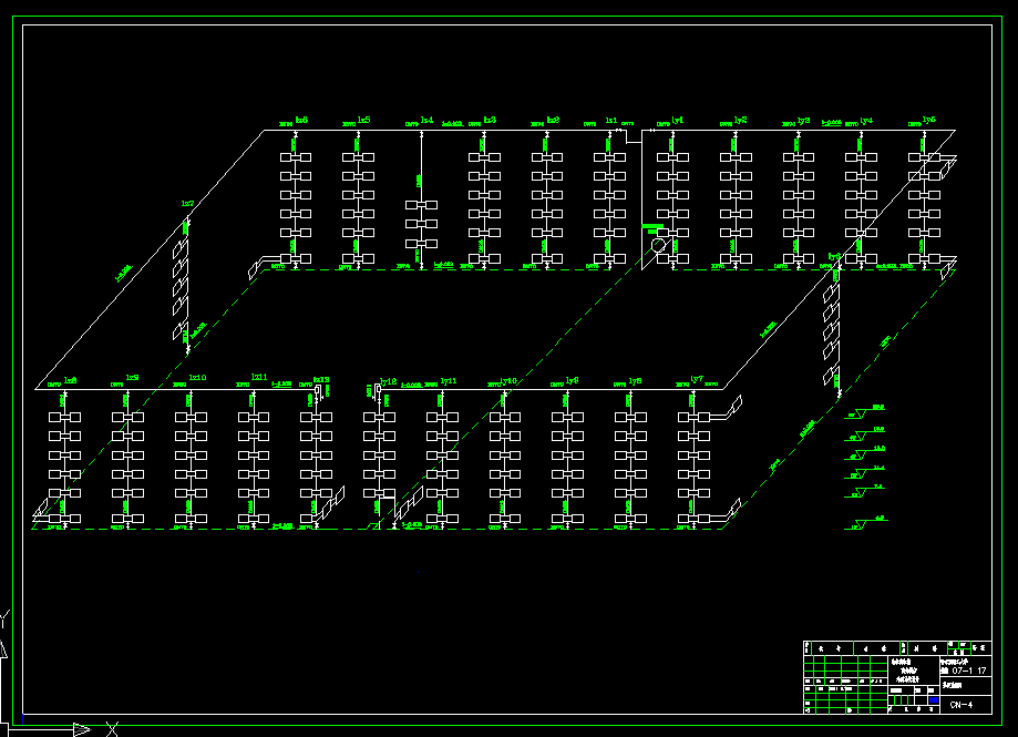 绘制管路系统图,并标号,进行水力计算(不等温降法)。然后进行各层供回水温度计算,确定各房间的暖气片数,并进行了布置。