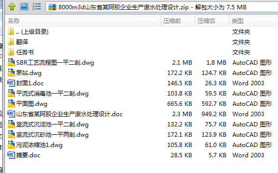 本次设计的污水为阿胶废水,设计的主要任务是设计一座小型污水厂来处理阿胶废水。该污水处理厂,日处理水量为 8000m3/d。