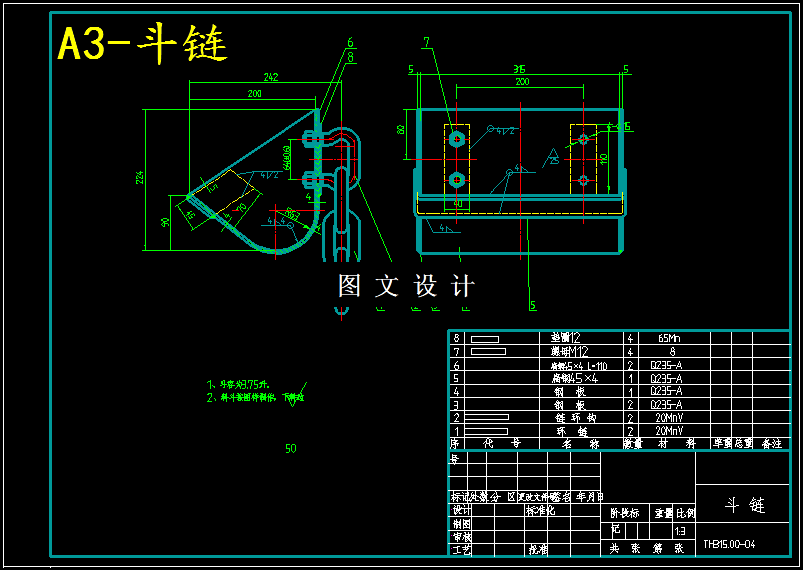 斗式提升机广泛地应用于建材、机械、有色金属、粮食等行业;可用于垂直方向或倾斜角度很小时的散料或碎块物的输送。通过设计计算与分析,确定了斗提机的整体结构、部件结构以及部分零件结构,并对重要的零部件结构进行了验算;其中,对易磨损的料斗、牵引构件和轴做了重点校核。本次设计的斗式提升机运送物料的有载分支和不运送物料的无载分支形成闭合环路,可连续输送物料。该机具有运行平稳可靠,噪音小,维护方便,寿命长等特点。输送量比普通机型提高30%以上。由于物料的输送是在封闭的空间内进行,可减少灰尘对周围环境的污染。本次设计满足了设计要求,达到了预期的目的。该机的应用将对提高物料的输送效率、降低对环境的污染以及提高机器的可靠性、使用寿命具有重要的意义。