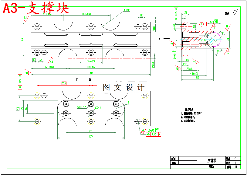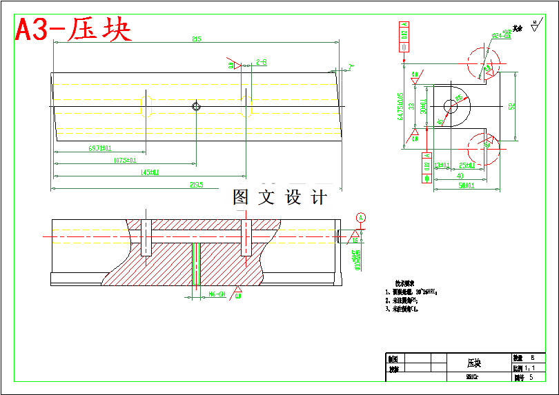 本次设计主要设计齿条磨床夹具,此夹具的优点是磨削精度高,能够进行不同零件的加工,既能加工各种柱形面又能加工各种圆柱形上有平面需要加工的工件,其应用范围非常广泛。这种夹具主要是利用磨头的上下运动和砂轮的圆周面进行磨削,砂轮的转速较高,圆周离心力也较大,当砂轮与工件的表面接触时,会瞬时磨出火花。本次设计的零件既为圆柱形工件,要求在圆柱面上利用齿条磨床磨出一个齿形面,其加工工序分为:首先在铣床上先粗铣一个平面,然后利用磨床夹具夹紧齿条,金刚滚轮对砂轮进行校正,砂轮高速旋转的过程中对平面进行磨削加工,这样就可以加工出所需要形状的工件。总之通过本次设计,使我了解了齿条磨齿夹具的组成部分及各部分所起的作用,从而使我明白了夹具的工作原理和在加工中的重要性。