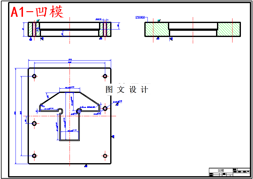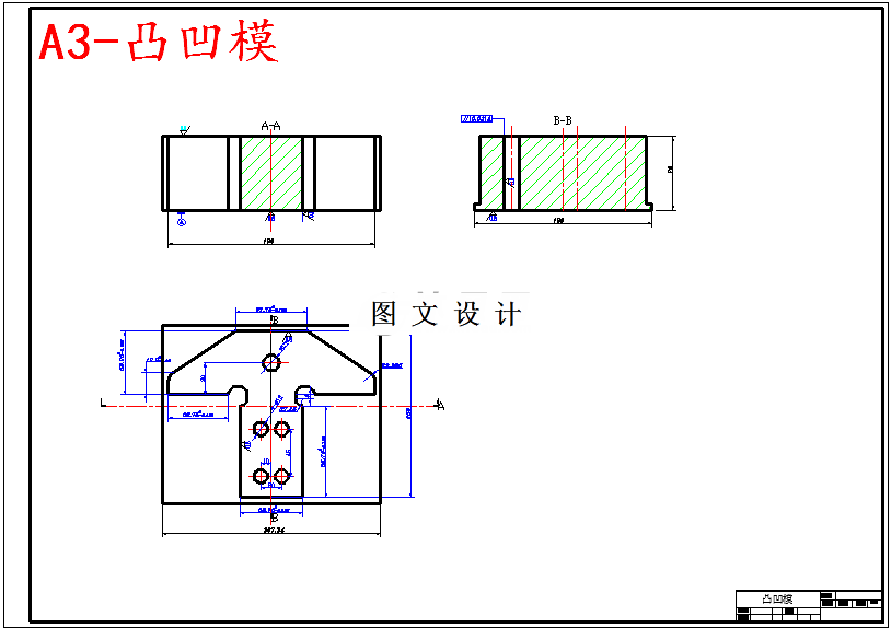 零件为一落料冲孔弯曲件,可提出的加工方案如下: 方案一:先落料,再冲孔,最后弯曲。采用两套单工序模和一套弯曲模生产。 方案二:先落料—冲孔复合冲压,最后弯曲。采用一套复合模和一套弯曲模生产。 方案三:先冲孔—落料连续冲压,最后使用弯曲。采用一套级进模和一套弯曲模生产。 方案四:先落料,再弯曲,最后使用冲孔。采用一套落料模、一套弯曲模和一套弯曲模. 方案一模具结构简单,但冲裁时需两道工序、两副模具,生产效率低,零件精度较差,在生产批量较大的情况下不适用。方案二冲裁时只需一副模具,冲压件的形位精度和尺寸精度易保证,且生产效率高。尽管冲裁模具结构较方案一复杂,但由于零件的几何形状较简单,模具制造并不困难。方案三冲裁时也只需一副模具,生产效率也很高,但与方案二比生产的零件精度稍差。欲保证冲压件的形位精度,需在模具上设置导正销导正,模具制造、装配较复合模略复杂。方案四,由于孔的位置及大小不影响以后的弯曲,与方案一一样生产效率低,零件精度较差,不适于大批量生产。所以,比较四个方案欲采用方案二生产。现对复合模中凸凹模壁厚进行校核,当材料厚度为6mm时,可查得凸凹模内孔不积存废料最小壁厚为6mm,现零件上的最小间距为7mm,所以可以采用复合模生产,即采用方案二。仅供参考。