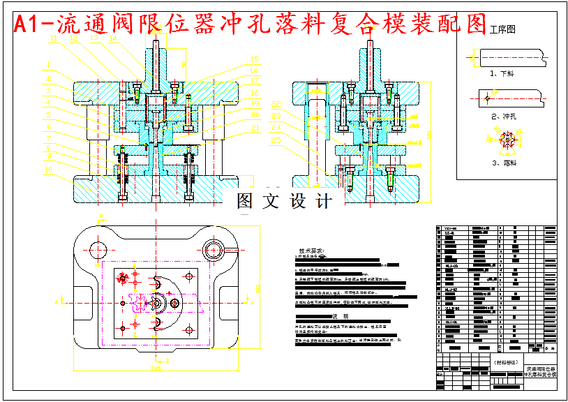 流通阀限位器冲孔落料复合模设计(先冲孔后落料)在满足零件尺寸精度的前提下,考虑大批量生产以及需要较高的生产效率等因素可采用第二套方案,即采用冲孔—落料复合模,然后变薄翻边,最后进行整形。
