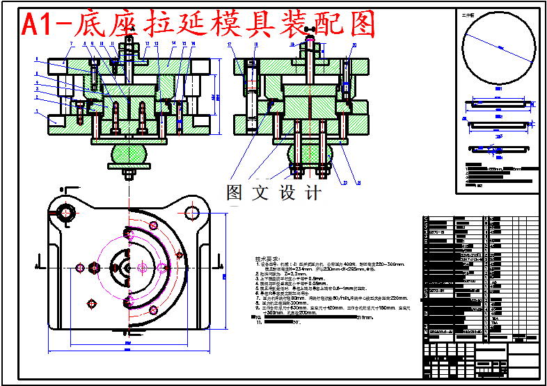 技术要求: 1.设备型号:机械(J)型开式压力机,公称压力400吨,封闭高度220-300mm. 模具封闭高度H=234mm,所以230mm