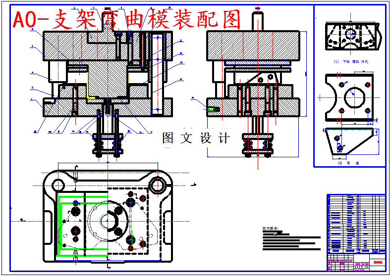此次课程设计的课题只设计弯曲工序,故只需设计弯曲模,因为零件各孔边缘到弯曲范围的距离大于二倍料厚(即B>2t),故完全可以先冲孔后落料,即此次设计只设计弯曲工序,且冲孔可和落料在一套模具上完成。技术要求: 1:打模具编号 ; 2:选用100KN开式压力机; 3:弯曲模配合加工,保证双边间隙在0.26之间,配合加工; 4:上下模座的平行度保证在小于0.8; 5:模柄中心线对于上下模的垂直度保证在大于0.05; 6:导柱导套之间要润滑,加润滑油; 7:上模板离导套的距离和下模板离导柱的距离要小于1mm.