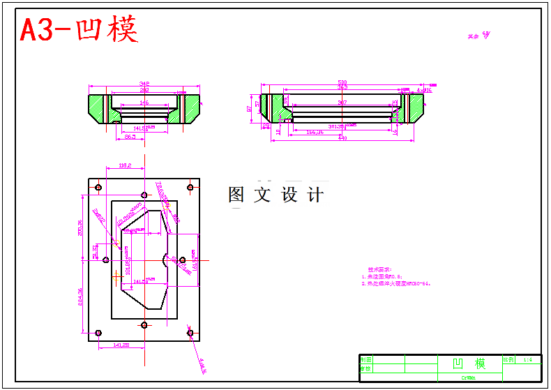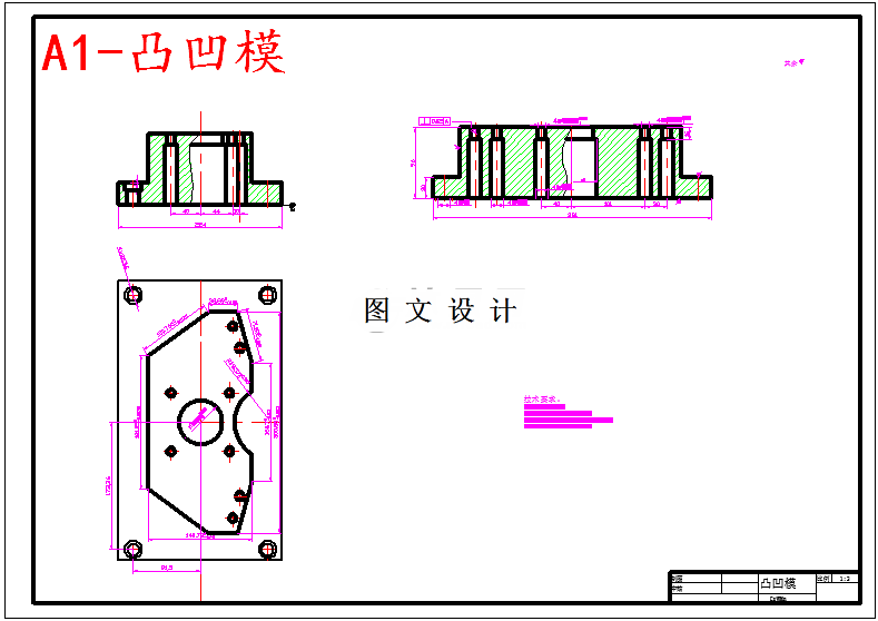根据方案分析比较的情况,本设计选用落料-冲孔复合模。复合模分有顺装和倒装两种形式,其中顺装模是将凸凹模装在上模部分,卸料板装在下模。倒装模是将凸凹模装在下模部分,卸料板装在下模,这种结构不必特别清除废料,操作方便。所以选用倒装式复合模。模架选用后侧导柱模架,导柱安装在后侧,可以从左、右、前三个方向送料,操作比较方便。由于本冲压件是大批量的、料窄且尺寸大,采用手动操作方式,从右侧送料。本套模具采用倒装式复合模结构,冲孔废料可以直接从模具写的废料口掉出。卸料板在下模上,选择应用广泛的橡胶作为弹性元件。推件杆上装有弹簧,模具闭合时,弹簧被压缩,然后弹簧反弹可将件推出。